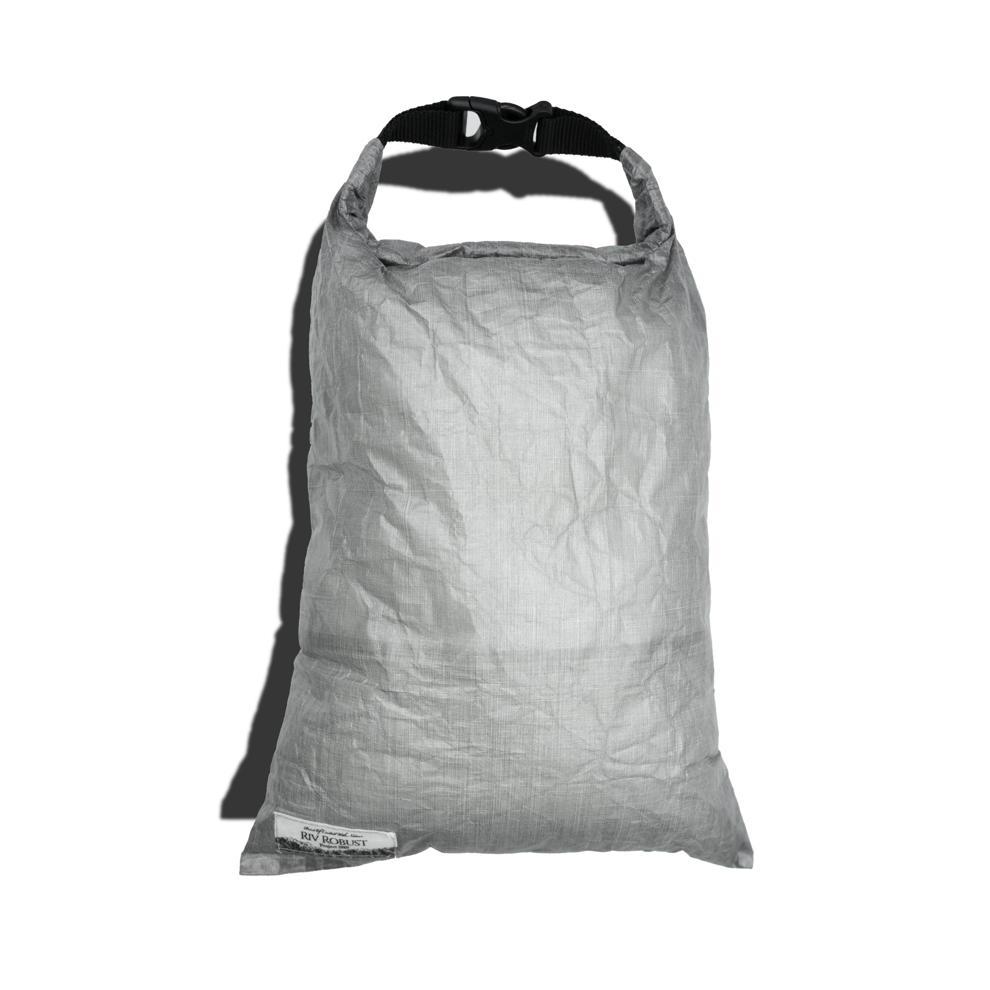 軽さと強さをあわせ持つ、ロールトップバッグ。このバッグは、工房でひとつひとつハンドメイドで製作しています。タグ裏や縫い代にはDCFテープで補強とシーム処理を施し、荷物をできるだけドライに保ちやすいよう仕上げました。ロールトップ仕様にすることで開口部の密閉性を高め、シンプルながら実用性の高いバッグです。